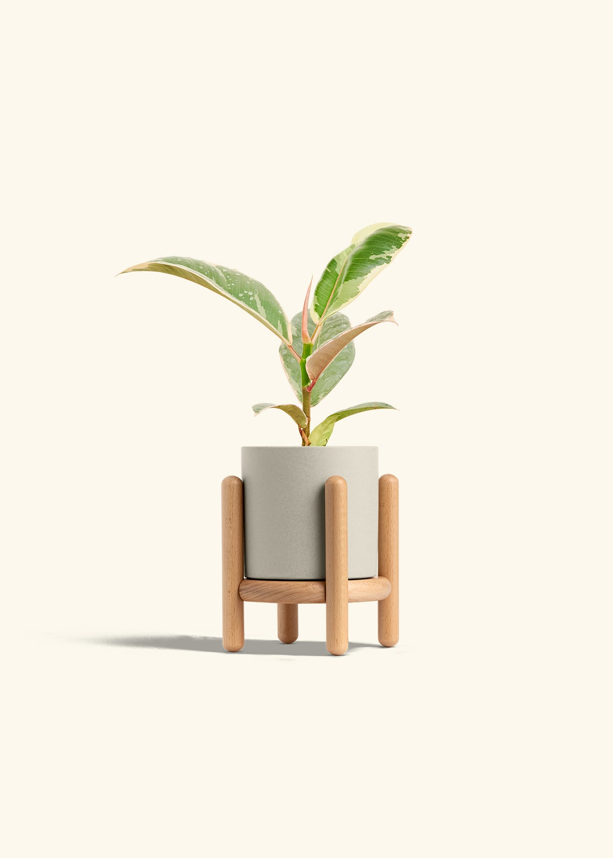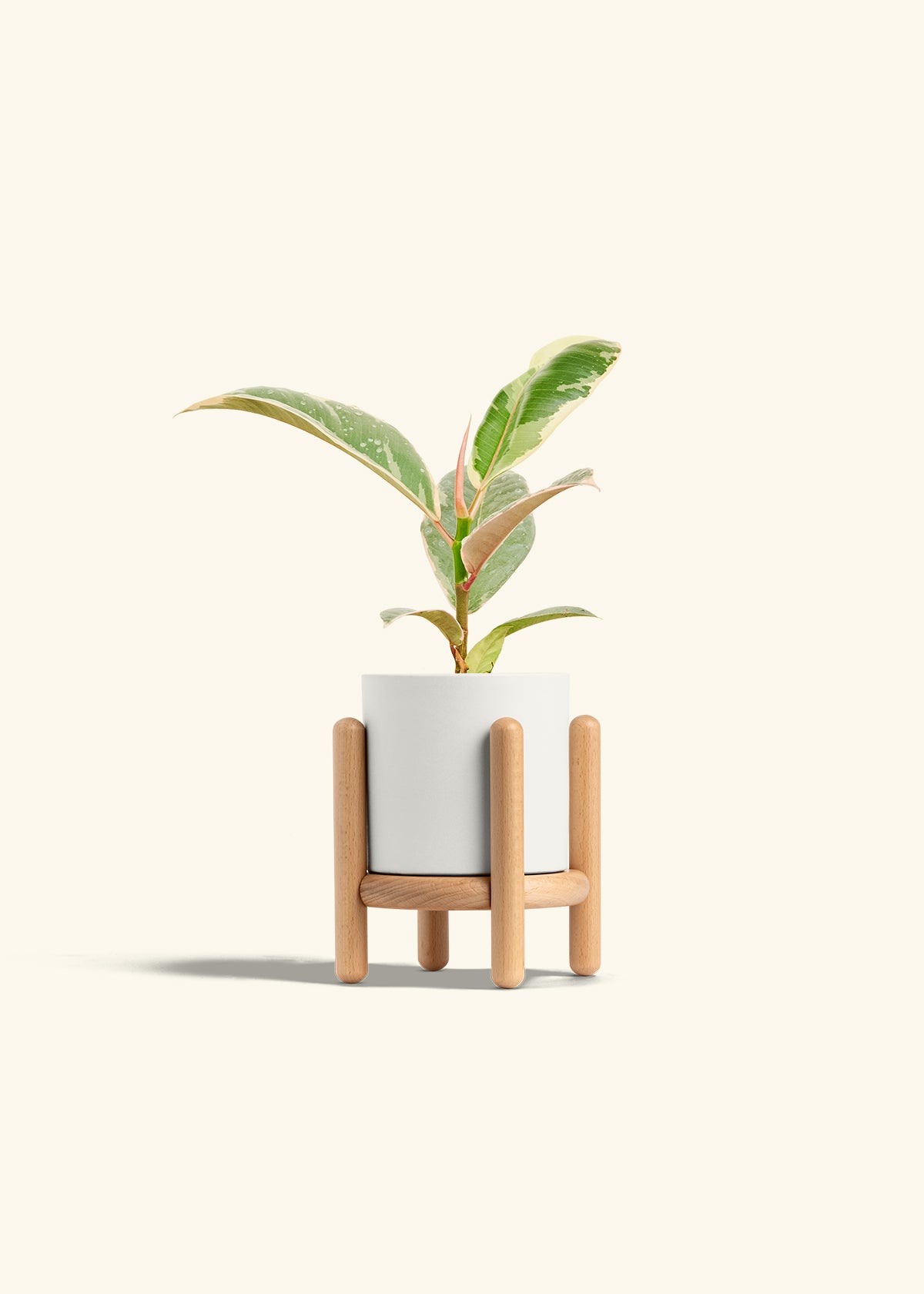 This variegated rubber tree has beautiful variegated leaves that sport a white cream and sage green color. It's extremely easy to take care of, and you can maximize variegation if you have bright light.