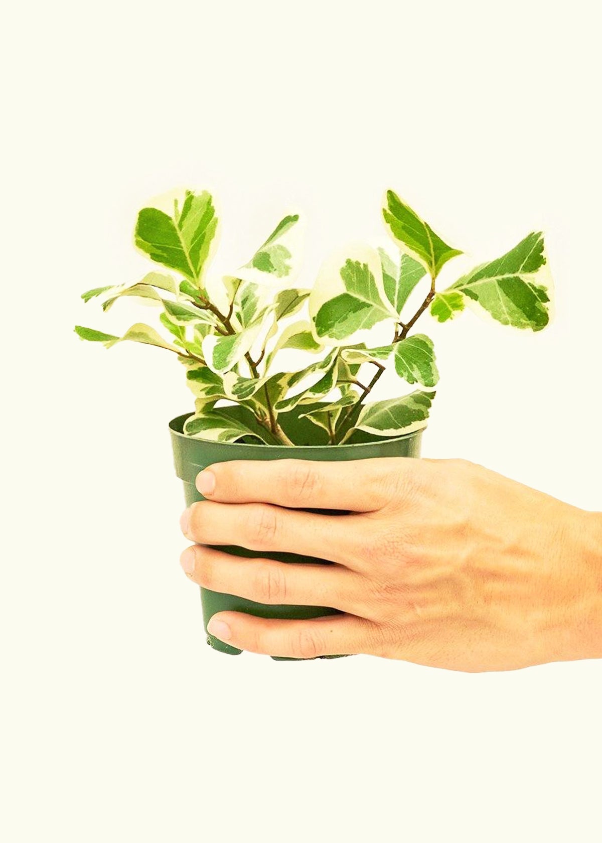 This plant is from South Africa, which means exposure to an ample amount of light is a must for successful growth. It has unique, triangular-shaped leaves with stunning cream-colored variegation and is a slow grower. It typically grows outwardly, maxing out at ~4ft, making it the perfect fit for any space.